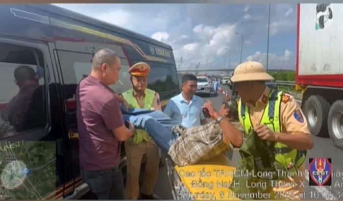 Theo đó, khoảng 10h ngày 8-11-2025, trong quá trình tuần tra kiểm soát trên tuyến cao tốc TP.HCM – Long Thành – Dầu Giây, Tổ CSGT số 4, Đội 6 nhận được tin báo từ lực lượng tuần đường VecE về việc một xe ô tô khách biển số 86B-011.48, do lái xe Hà Văn Minh (53 tuổi, ngụ xã Đức Linh, tỉnh Lâm Đồng) điều khiển, có dấu hiệu đột quỵ khi đang lưu thông đến Km25+350, đoạn qua xã Long Thành, tỉnh Đồng Nai.