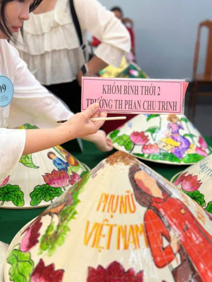 Cô Trần Tô Kim Phượng (giáo viên dạy mỹ thuật của Trường Tiểu học Phan Chu Trinh), cho biết mất khoảng 1 tuần nhóm của cô mới vẽ xong 9 chiếc nón từ việc lên ý tưởng đến vẽ phác họa và cuối cùng là vẽ lên nón thành phẩm.