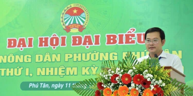 Đồng chí Võ Thành Long- Chủ tịch Hội Nông dân phường Phú Tân nhiệm kỳ 2025-2030 phát biểu tại đại hội.