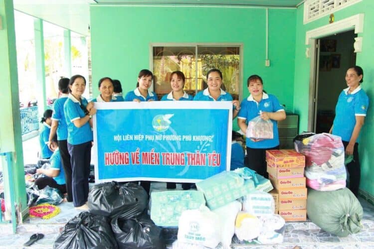 Tại phường Phú Khương, tinh thần tình nguyện và sẻ chia cũng diễn ra khẩn trương, vừa ấm áp nghĩa tình. Từng túi băng vệ sinh được chuẩn bị một cách chu đáo, như một lời nhắn nhủ dịu dàng gửi đến các chị em rằng họ không đơn độc giữa thiên tai. Những chiếc áo ấm, chiếc mền, từng phần quà thiết yếu dành riêng cho trẻ em đều được các chị kiểm tra kỹ lưỡng, gấp gọn gàng và xếp riêng từng thùng, để khi đến tay các em, mọi thứ đều sạch sẽ, gọn gàng và ấm áp. Mỗi hành động nhỏ ấy, một cái gập áo, một túi băng vệ sinh đặt cẩn thận đều chứa đựng tình thương và sự quan tâm sâu sắc. Chính sự tỉ mỉ này, sự chăm sóc chu đáo ấy, khiến những phần quà không chỉ là vật chất mà còn là niềm an ủi, là hơi ấm tinh thần dành cho phụ nữ và trẻ em giữa bão lũ. Chị Nguyễn Thị Thùy Dương, Chủ tịch Hội Liên hiệp Phụ nữ phường Phú Khương, chia sẻ: “Chúng tôi đã vận động được 4.000 túi băng vệ sinh, hàng trăm chiếc mền, thuốc men, cá mòi, nước suối, áo khoác… Mỗi phần quà là một lời nhắn nhủ: bà con ở vùng lũ không đơn độc. Chỉ mong bà con nhận được và cảm thấy ấm lòng, mong mọi người sớm ổn định cuộc sống” . Mỗi món quà gửi đi không chỉ là vật chất, mà còn là sự sẻ chia, là lời nhắn nhủ đầy yêu thương: các chị em, các em trong vùng lũ được chăm lo, được quan tâm đúng mức, và không bao giờ đơn độc giữa bão lũ. Hoạt động này khẳng định vai trò kết nối cộng đồng và tinh thần tương trợ sâu sắc mà Hội Phụ nữ Phú Khương đã và đang thực hiện.