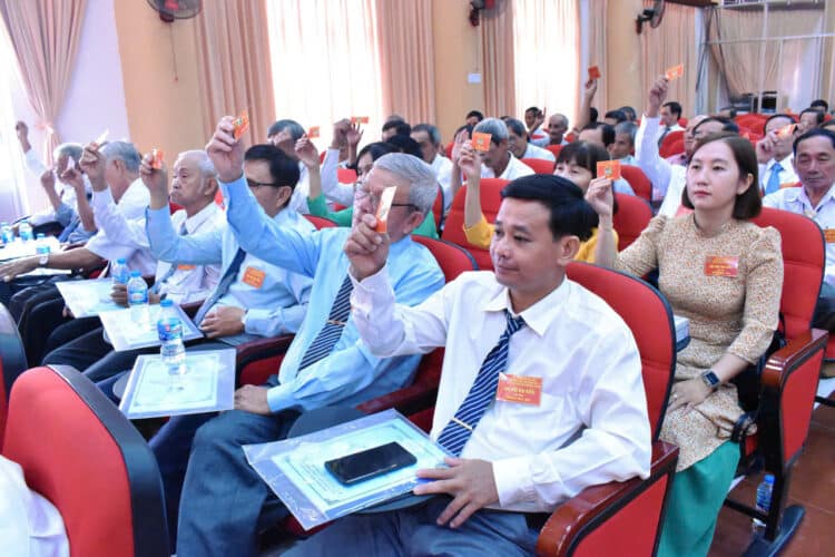 Đại biểu biểu quyết các chỉ tiêu tại đại hội