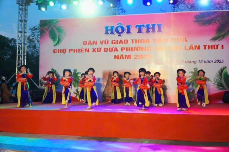 (VHCĐO) – Trong không khí rộn ràng của Chợ Phiên Xứ Dừa – Phiên hội Cao Nguyên phường An Hội, những ngày cuối tháng 12 năm 2025 trở nên rực rỡ, ấm áp và giàu cảm xúc với Hội thi Dân vũ giao thoa vùng miền. Hội thi do Phòng Văn hóa – Xã hội phường An Hội tổ chức là điểm nhấn văn hóa đặc sắc trong chuỗi hoạt động của phiên hội, góp phần cụ thể hóa chủ trương của Đảng về xây dựng nền văn hóa Việt Nam tiên tiến, đậm đà bản sắc dân tộc; đồng thời phát huy sức mạnh đại đoàn kết toàn dân tộc trong giai đoạn mới.