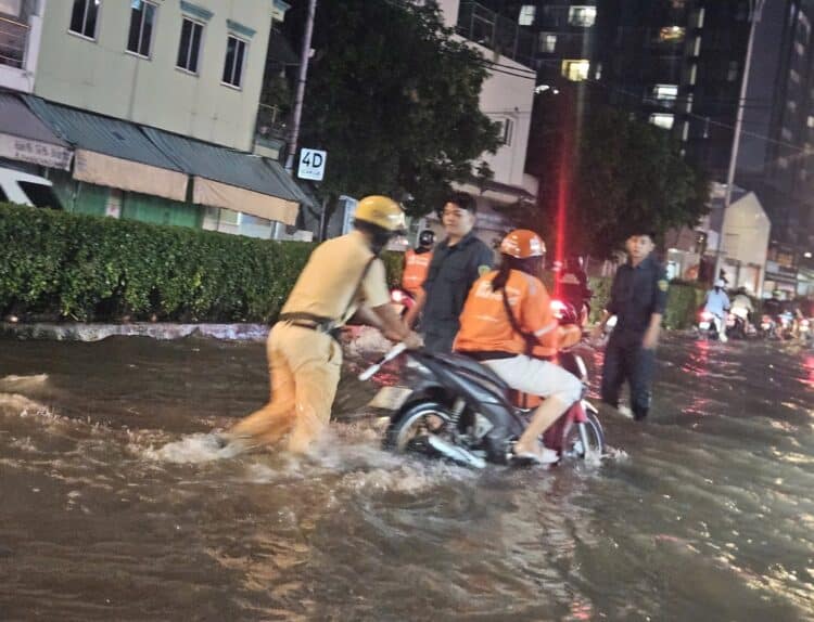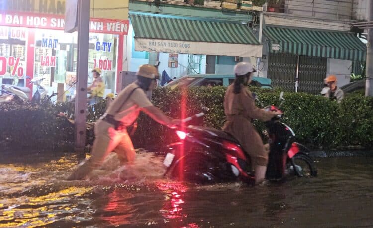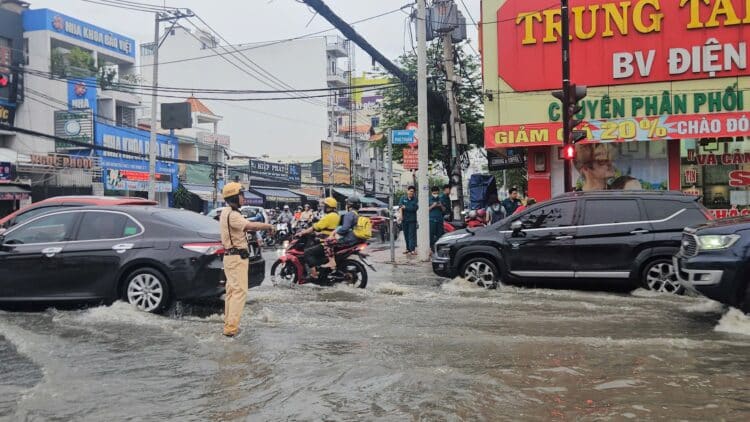 (VHCĐO) – Trong tình hình triều cường dâng cao, tình trạng ngập nước tại một số tuyến đường diễn ra nghiêm trọng trong những ngày qua, dẫn đến người dân đi lại khó khăn, nhất là tình trạng mưa lớn kéo dài khi vào khung giờ cao điểm, lượng phương tiện tập trung đông đúc vì người dân đi làm, về nhà và đưa đón con đi học dẫn đến giao thông di chuyển khó khăn, tiềm ẩn nhiều nguy cơ gây mất TTATGT.