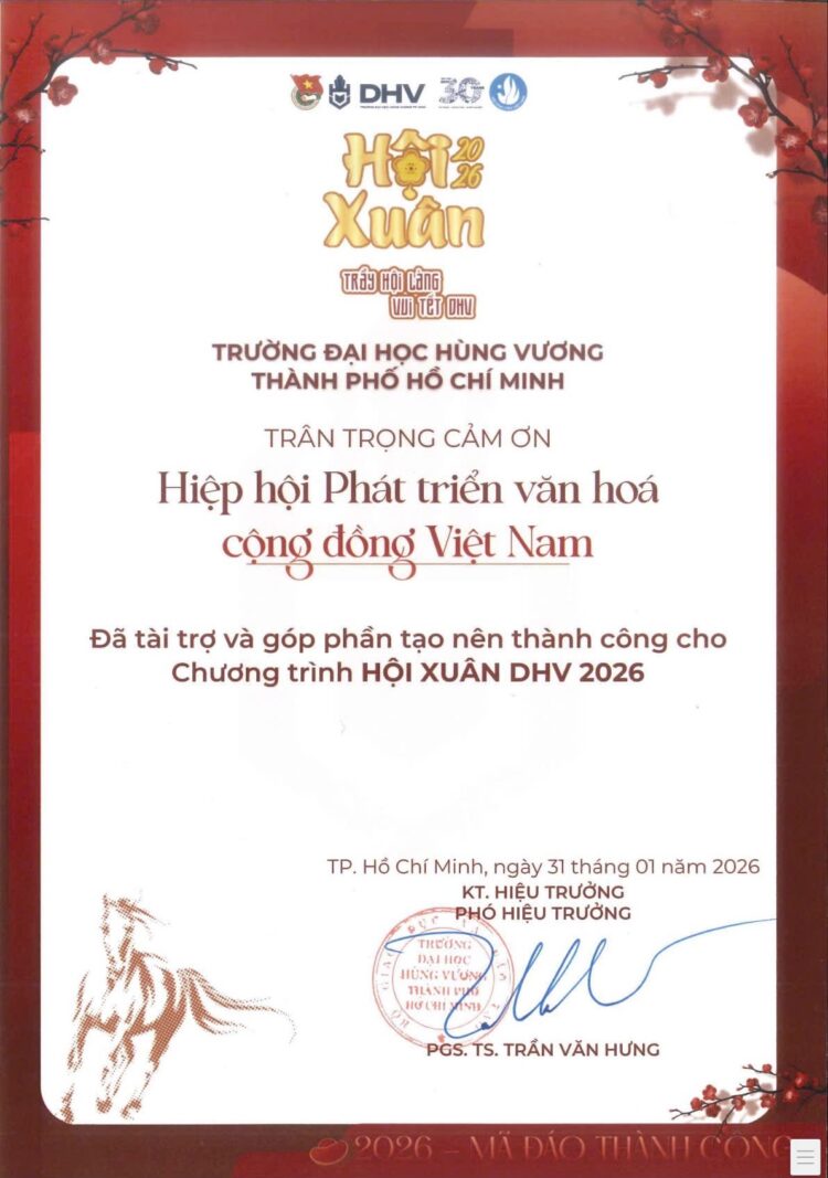 (VHCĐO) – Ngày 31/1, Trường Đại học Hùng Vương TP.HCM (DHV) tổ chức Hội xuân 2026 với chủ đề “Trẩy Hội làng – Vui tết DHV” – đây là sự kiện văn hóa truyền thống thường niên mang đậm bản sắc Việt, đồng thời thể hiện rõ nét triết lý giáo dục, hội nhập và phát triển bền vững của nhà trường.